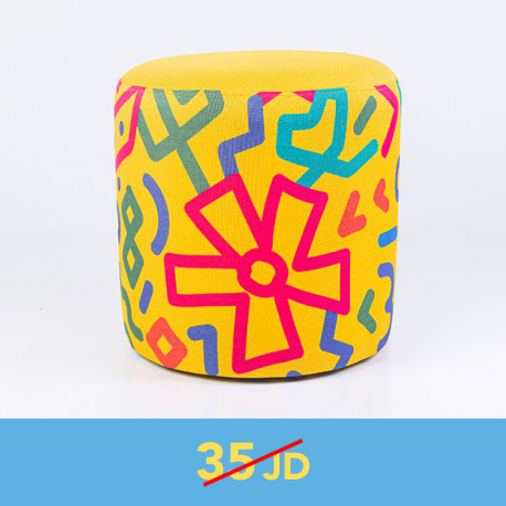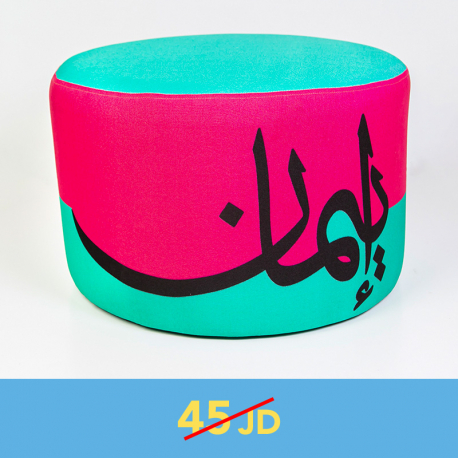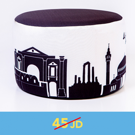 طاولة خشبية مزينة بنقش الشماغ باللون الأبيض والأحمر.