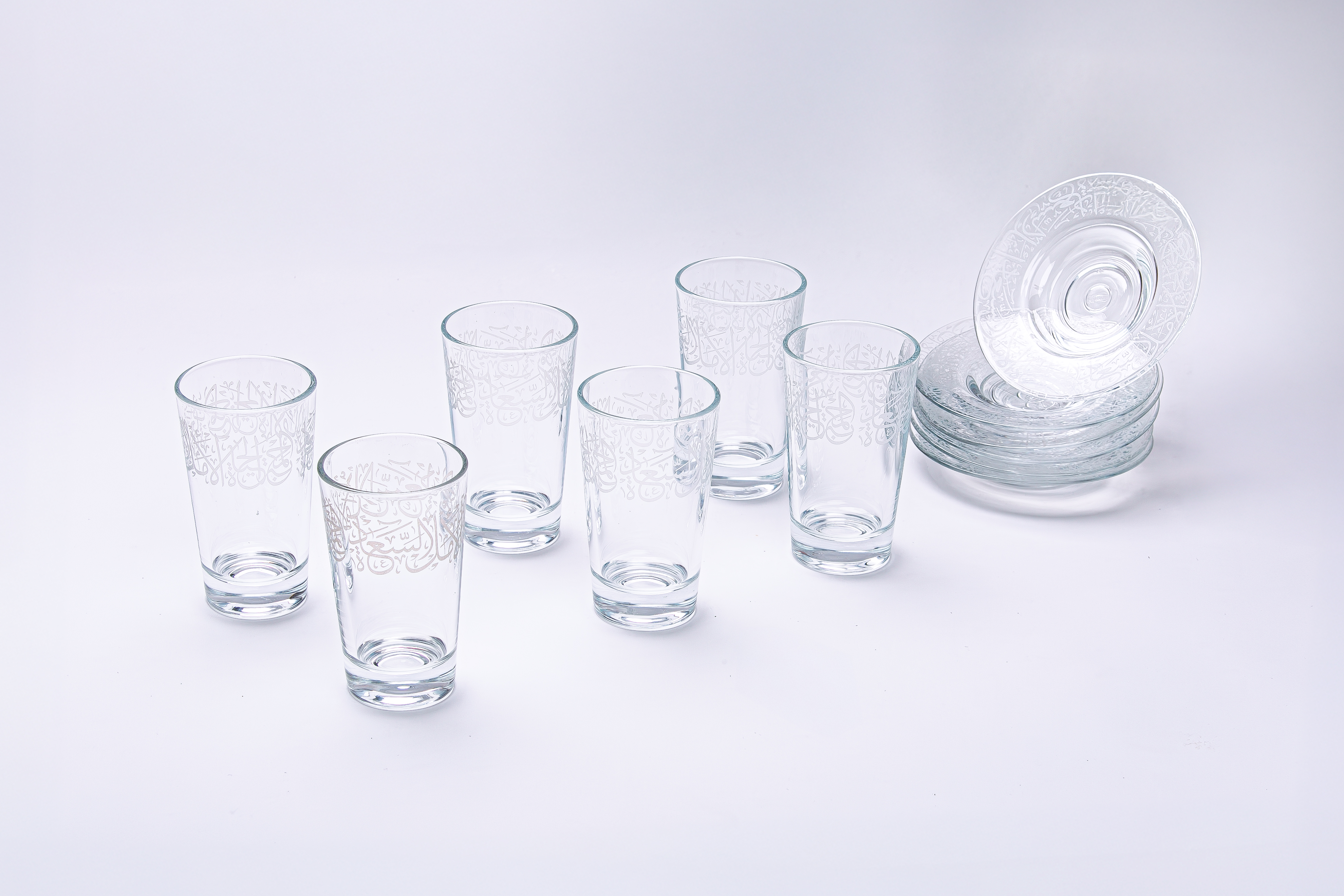 Set of six Tea Istikan and Saucers Designed with calligraphy “محبة حياة سعادة أمل”